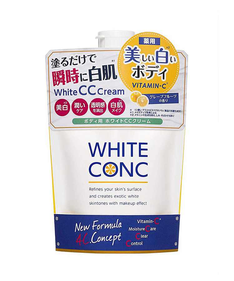 Kem dưỡng thể ban ngày White Conc White CC Cream ii dạng chất kem lỏng nhẹ giúp nhanh chóng dưỡng da trắng sáng, mịn màng, thành phần vitamin C chính trong sữa dưỡng thể còn có tác dụng tái tạo tế bào, đảm bảo da căng mịn và luôn tươi trẻ.