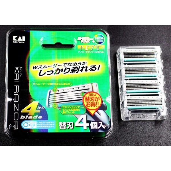 Lưỡi dao cạo râu thay thế Kai được làm từ thép không gỉ với loại 4 lưỡi kép hoặc 5 lưỡi kép.
